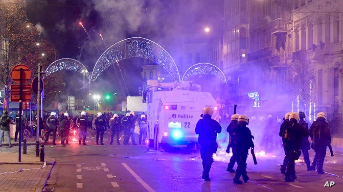 اشتبك نحو 100 من مشجعي كرة القدم المغاربة، التف بعضهم بالعلم الوطني، لفترة وجيزة مع الشرطة في وسط بروكسل، مساء الأربعاء، بعد فوز فرنسا على المغرب بهدفين مقابل لا شيء، في الدور قبل النهائي بكأس العالم لكرة القدم، وفقا لما ذكره مراسلو رويترز في الموقع.