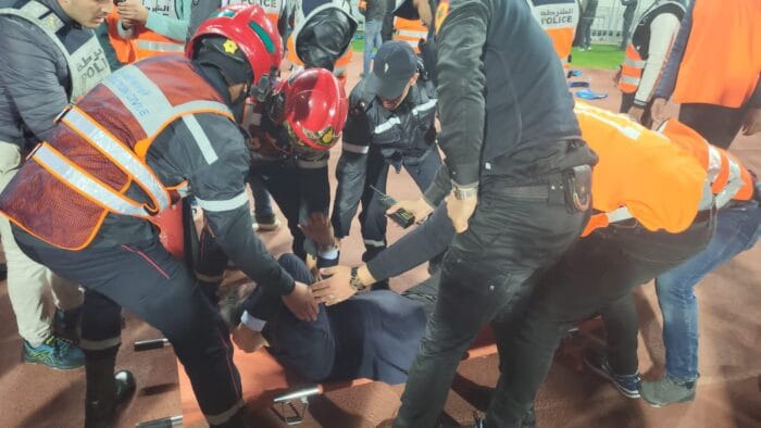 وأشار إلى أن مصالح الأمن أجرت معاينات للأضرار المادية التي لحقت مدرجات الملعب، كما تم تسجيل إصابات جسدية متفاوتة الخطورة استهدفت عميد شرطة يرأس دائرة أمنية وضابط للأمن في المجموعة المتنقلة لحفظ النظام، واللذين نقلا للمستشفى لتلقي العلاجات الضرورية بعد إصابتهما على مستوى الرأس والوجه.