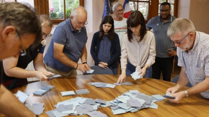 وبحصوله على ما بين 34,2 و34,5 في المئة من الأصوات، تقدم التجمع الوطني وحلفاؤه على تحالف اليسار (الجبهة الشعبية الوطنية) الذي حصد ما بين 28,5 و29,1 في المئة من الأصوات، فيما حل معسكر الرئيس إيمانويل ماكرون ثالثا (20,5 الى 21,5 في المئة) في هذا الاقتراع الذي شهد مشاركة كثيفة. أما الجمهوريون (يمين) الذين لم يتحالفوا مع اليمين المتطرف فنالوا عشرة في المئة.