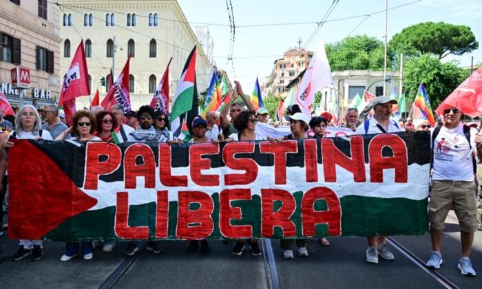 في روما، تجمع المئات من تلاميذ المدارس الثانوية أمام محطة تيرميني، ملوحين بالأعلام الفلسطينية ومرددين “فلسطين حرة!”.